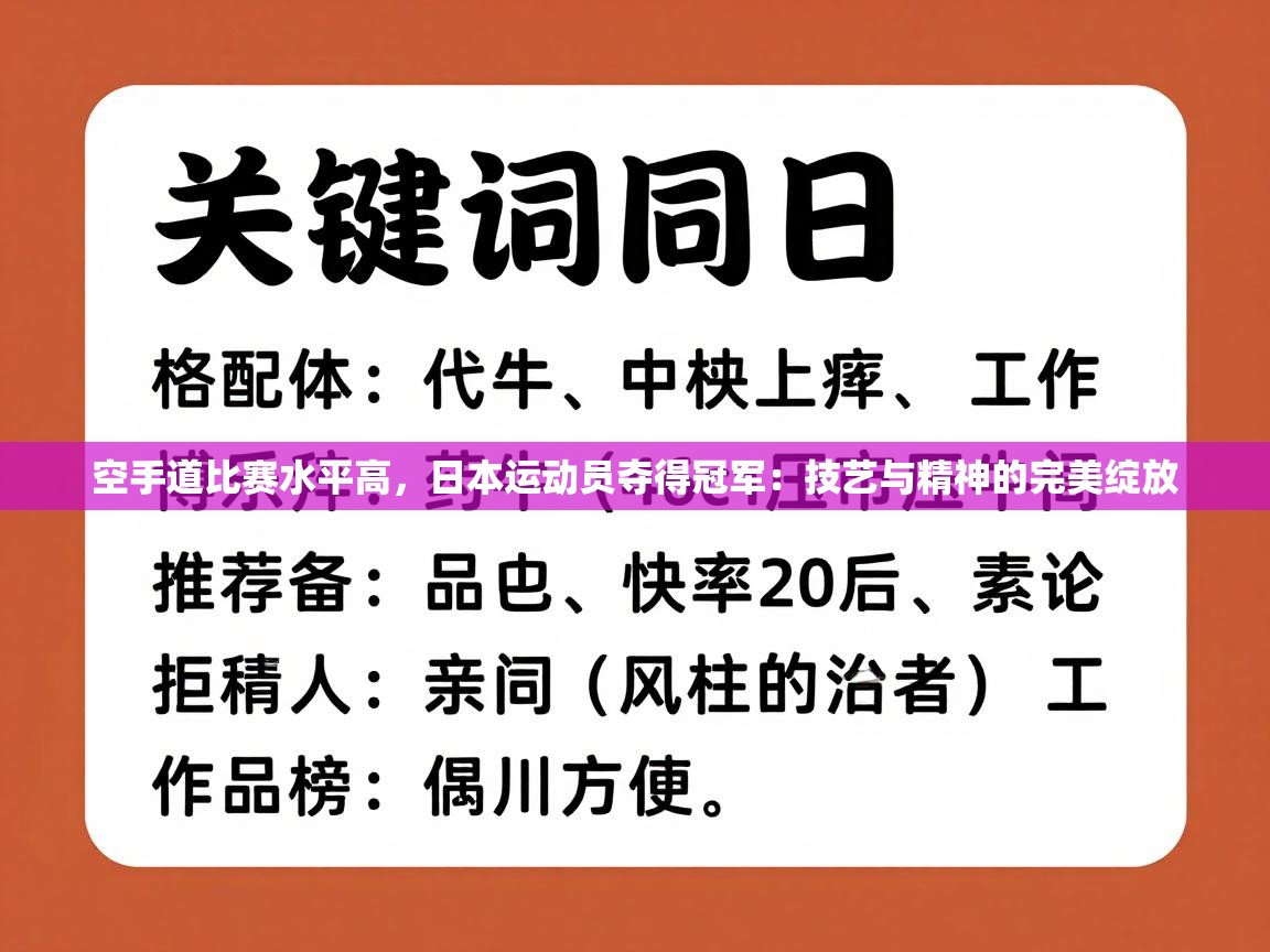 日本运动员最终夺冠并非偶然,而是长期积累、战术执行与临场冷静的叠加结果;他在比赛中展现出的手段并非花哨,而是极致简洁却效率惊人,...